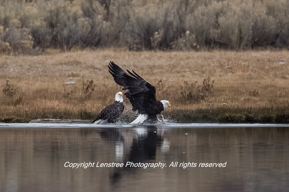 Eagle Emerging from River Bath