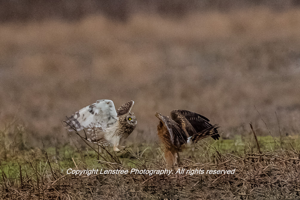 Short-eared Owl Attacking Harrier