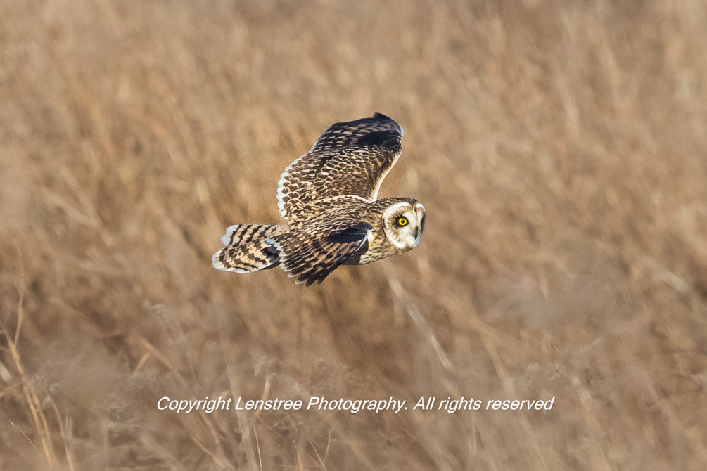 Short-eared Owl Gliding Low Over Grass