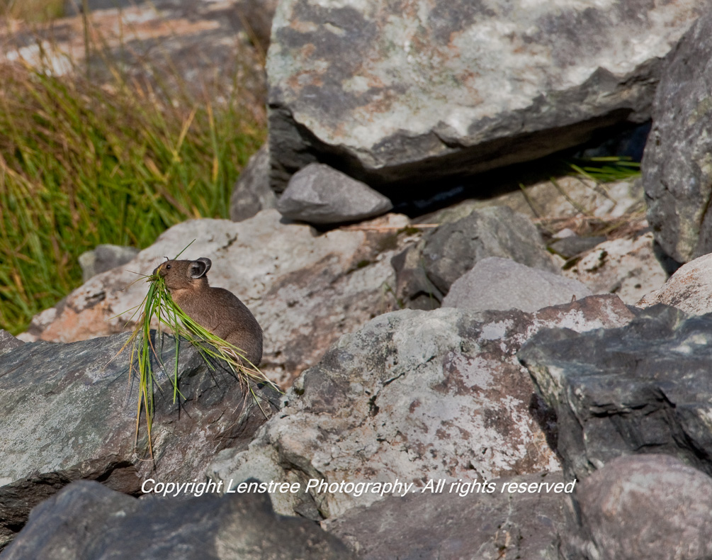 Pika Outside Haystack with Mouthful